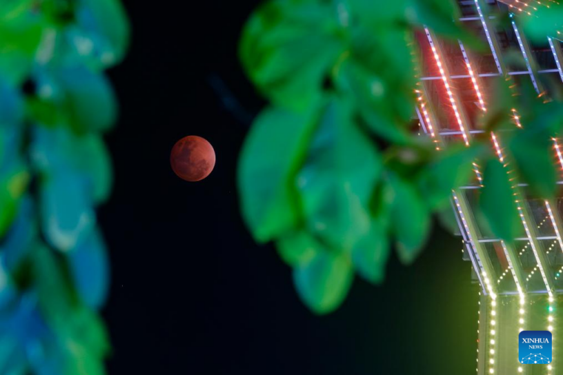 BEIJING, 3 marzo, 2026 (Xinhua) — La luna es vista durante un eclipse lunar total sobre la ciudad de Qiqihar, en la provincia de Heilongjiang, en el noreste de China, el 3 de marzo de 2026. El martes se celebró el Festival de las Linternas, que tiene lugar el decimoquinto día del primer mes del calendario tradicional chino. El festival de este año coincidió con un eclipse lunar total. (Xinhua/Wang Yonggang)