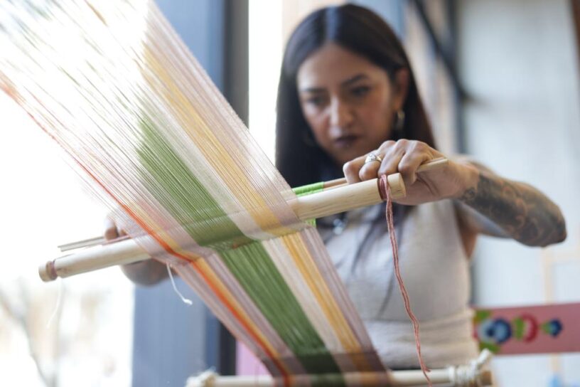 CIUDAD DE MEXICO, 4 marzo, 2026 (Xinhua) — Imagen del 25 de febrero de 2026 de una mujer realizando un tejido en un taller en el espacio público El Arsenal, en la Ciudad de México, capital de México. México fortalece la formación y la producción cultural con la reciente creación de El Arsenal, un espacio público orientado a la profesionalización en artes y oficios que amplía el acceso a la educación artística, mediante un modelo flexible con un enfoque basado en la experimentación, la creación colectiva y el intercambio de saberes. (Xinhua/Francisco Cañedo)