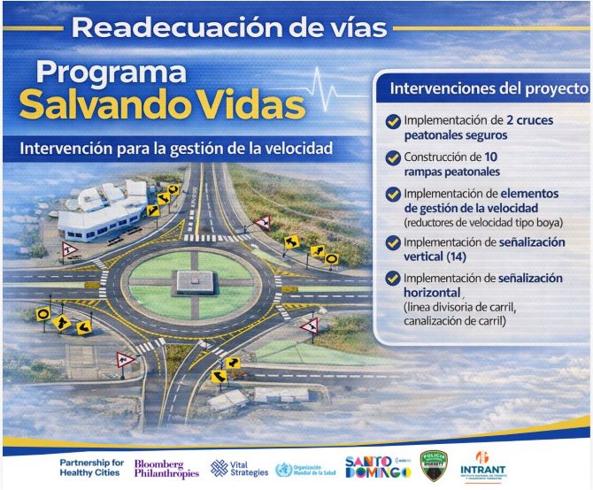 Santo Domingo, R. D., 7 de marzo, 2026.- La Alcaldía del Distrito Nacional, con la asistencia técnica de la Alianza de Ciudades Saludables (Partnership for Healthy Cities), inició la puesta en marcha del piloto de Seguridad Vial Salvando Vidas, que consiste en la Gestión de la velocidad en la Av. Los Próceres, en el tramo comprendido entre la avenida República de Argentina y la avenida Colombia.