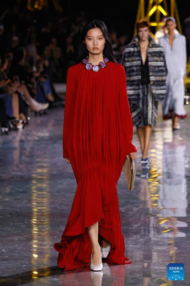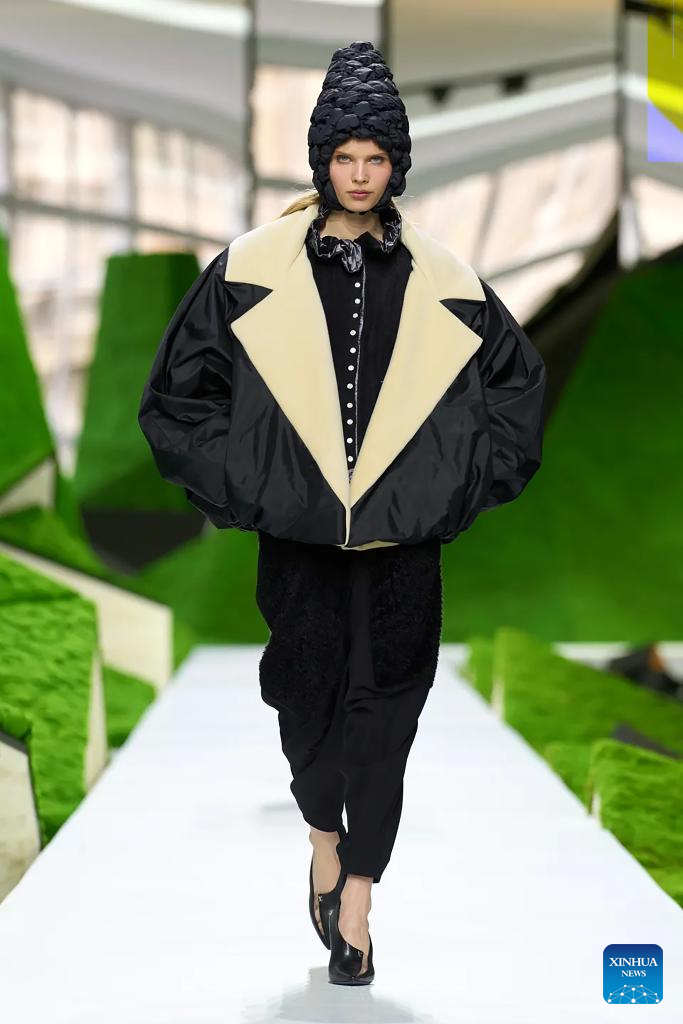 (260311) — PARIS, 10 marzo, 2026 (Xinhua) — Imagen del 10 de marzo de 2026 de una modelo presentando una creación de las colecciones listas para usarse Otoño/Invierno 2026-2027 de Louis Vuitton durante la Semana de la Moda de París, en París, Francia. (Xinhua/MeetEurope) (ah) (ra) (ce)