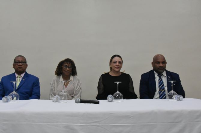 La mesa de honor estuvo integrada por la encargada de Educación Continuada de la FCJP, la maestra Ameracia Matos, en representación del decano maestro Héctor Pereyra Espaillat; el director del ICCRI de la academia, maestro Rafael Román Rodríguez, y los coordinadores de los diplomados, la doctora Yelidá Massiel Valdez, por el de “Medicina Forense y la Escena del Crimen”, y el doctor Federico Pérez Ogando, de “Odontología Forense y su Base Legal en la República Dominicana”.