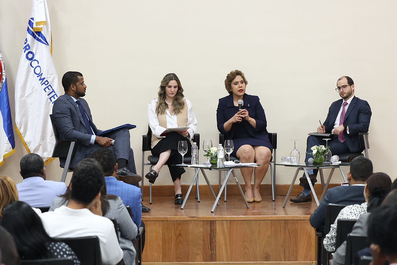 El conversatorio contó con la participación de María Elena Vásquez Taveras, presidenta del Consejo Directivo de la Comisión Nacional de Defensa de la Competencia (ProCompetencia); Alejandro Ibarra, experto en Derecho de la Competencia del Competition Law Center de la George Washington University; y Antonella Salgueiro, experta y consultora internacional en comercio y competencia.