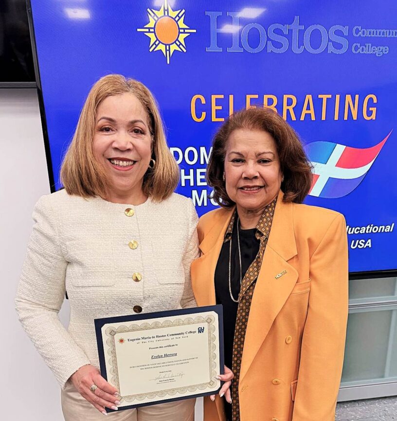 Nueva York, NY, EEUU (31-03-2026).- La activista social y escritora dominicana, Evelyn Herrera, nativa de Santiago de los Caballeros, fue reconocida por el Eugenio María de Hostos Community College of the City University of New York, durante un acto realizado recientemente en esa entidad.