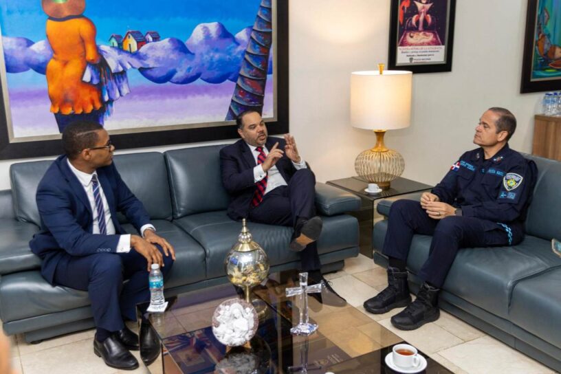 Santo Domingo.– El director general de la Policía Nacional, mayor general Andrés Modesto Cruz Cruz, recibió en su despacho al Defensor del Pueblo, Pablo Ulloa, donde conversaron sobre la importancia de continuar fortaleciendo la formación académica y los procesos de capacitación de los agentes policiales para con esto garantizar la protección de los derechos humanos de la ciudadanía.