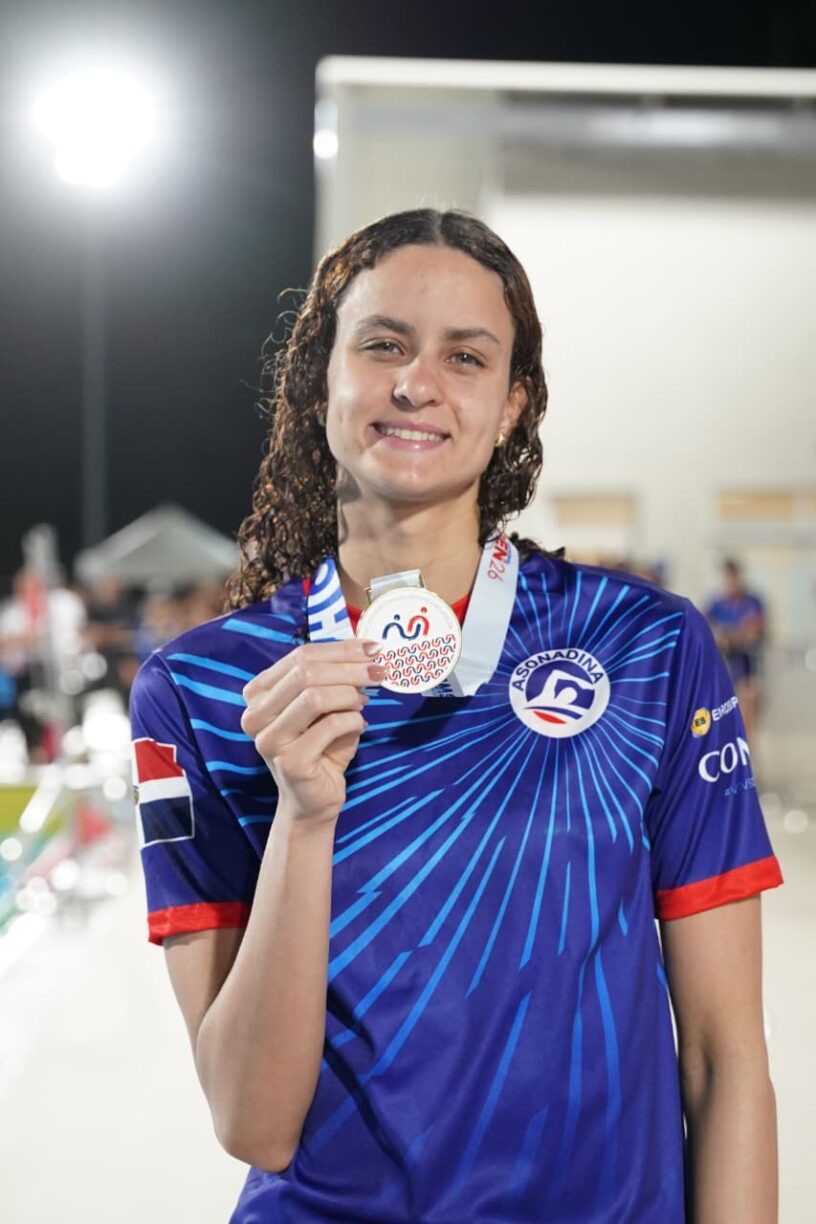 En 200 metro espalda en 13-14, Luca Chevarria de Costa Rica ganó oro con 2:20.83; plata y bronce para los quisqueyanos Julián Felipe Muñoz y Eduardo Abreu 2:30.91.