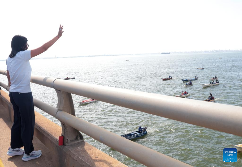 Imagen proveída por la Presidencia de Venezuela de la presidenta encargada venezolana, Delcy Rodríguez, saludando durante el inicio de la «Gran Peregrinación Nacional» en el Puente General Rafael Urdaneta, en el estado Zulia, Venezuela, el 19 de abril de 2026. Organizaciones sociales, políticas y religiosas iniciaron el domingo en Venezuela la llamada «Gran Peregrinación Nacional» convocada por Rodríguez para exigir el cese de las sanciones estadounidenses y pronunciarse en favor de la paz, informó el Gobierno del país sudamericano. (Xinhua/Presidencia de Venezuela)