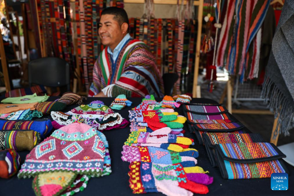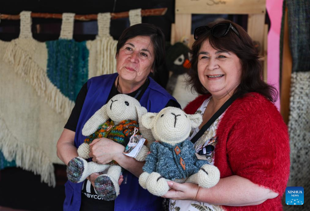 SANTIAGO, 26 abril, 2026 (Xinhua) — Imagen del 25 de abril de 2026 de un hombre mostrando piezas tejidas en lana en un festival de lana, en Santiago, Chile. (Xinhua/Zhou Jiayi)