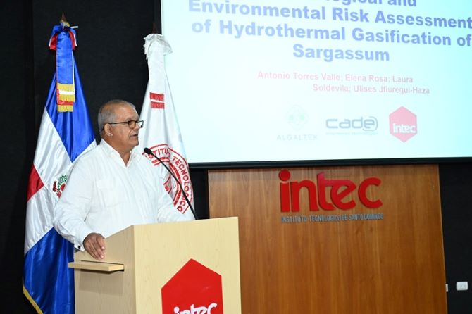 Santo Domingo, R. D., 27 de abril, 2026.- Un equipo de investigadores delInstituto Tecnológico de Santo Domingo (INTEC), en alianza con las empresas Algaltek, de Suiza, y CADE Soluciones, de España, desarrollaron un método de biorrefinería y gasificación hidrotermal para procesar el sargazo húmedo y separar el arsénico de la macroalga, producir gases de síntesis (monóxido de carbono, dióxido de carbono, hidrógeno verde y metano), así como compuestos de interés para la industria farmacéutica, cosmecéutica y nutracéutica.
