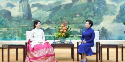 Peng Liyuan charla durante el té con esposa de presidente de República de Corea